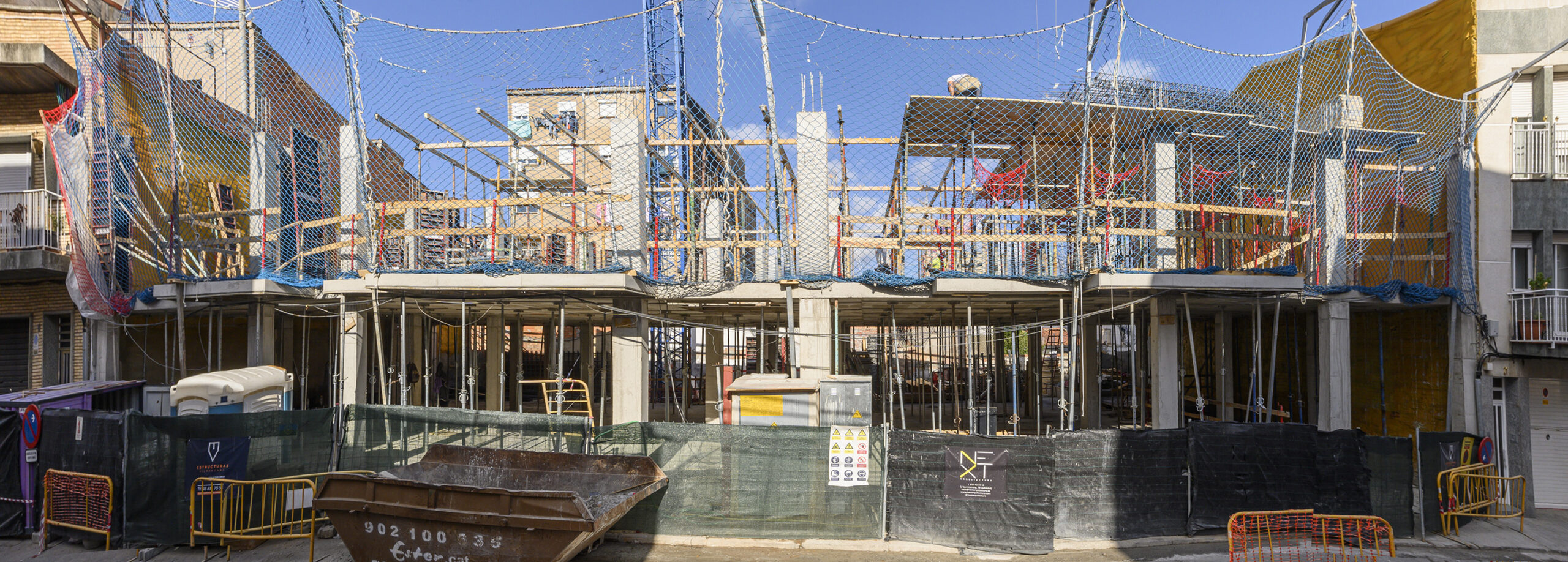 •   Estructura porticada amb pilars i forjats reticulars de formigó armat.
