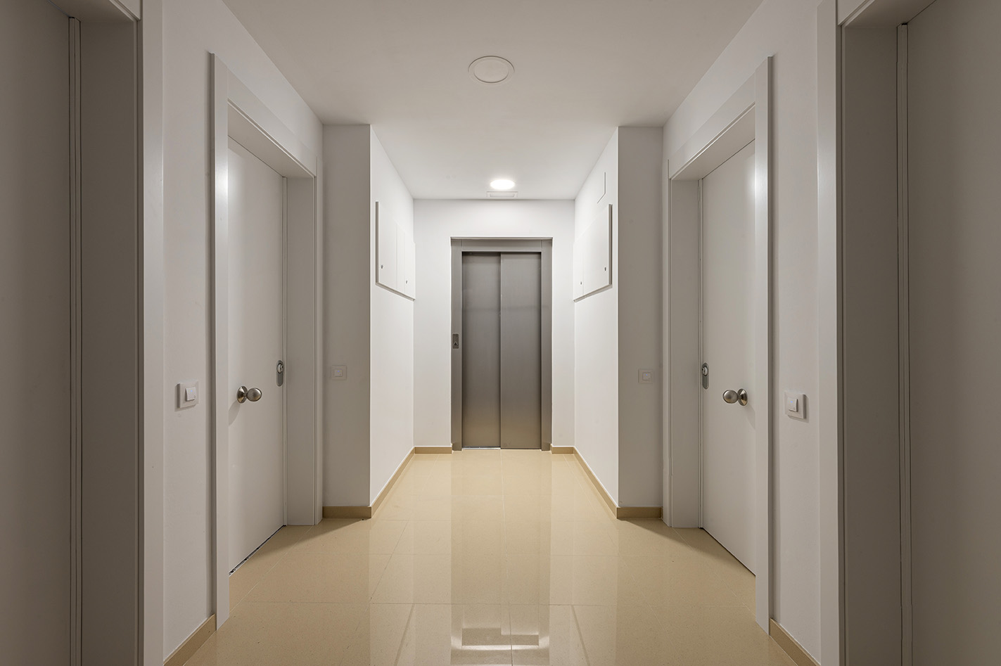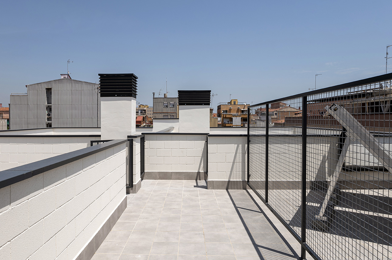 • Falsos sostres realizats amb plaques de guix en banys, cuines i zones de pas d’instal·lacions, acabats amb pintura plàstica llisa.