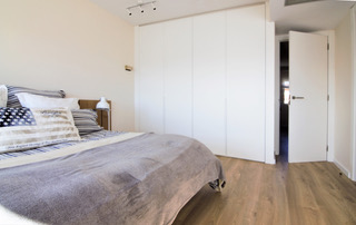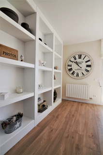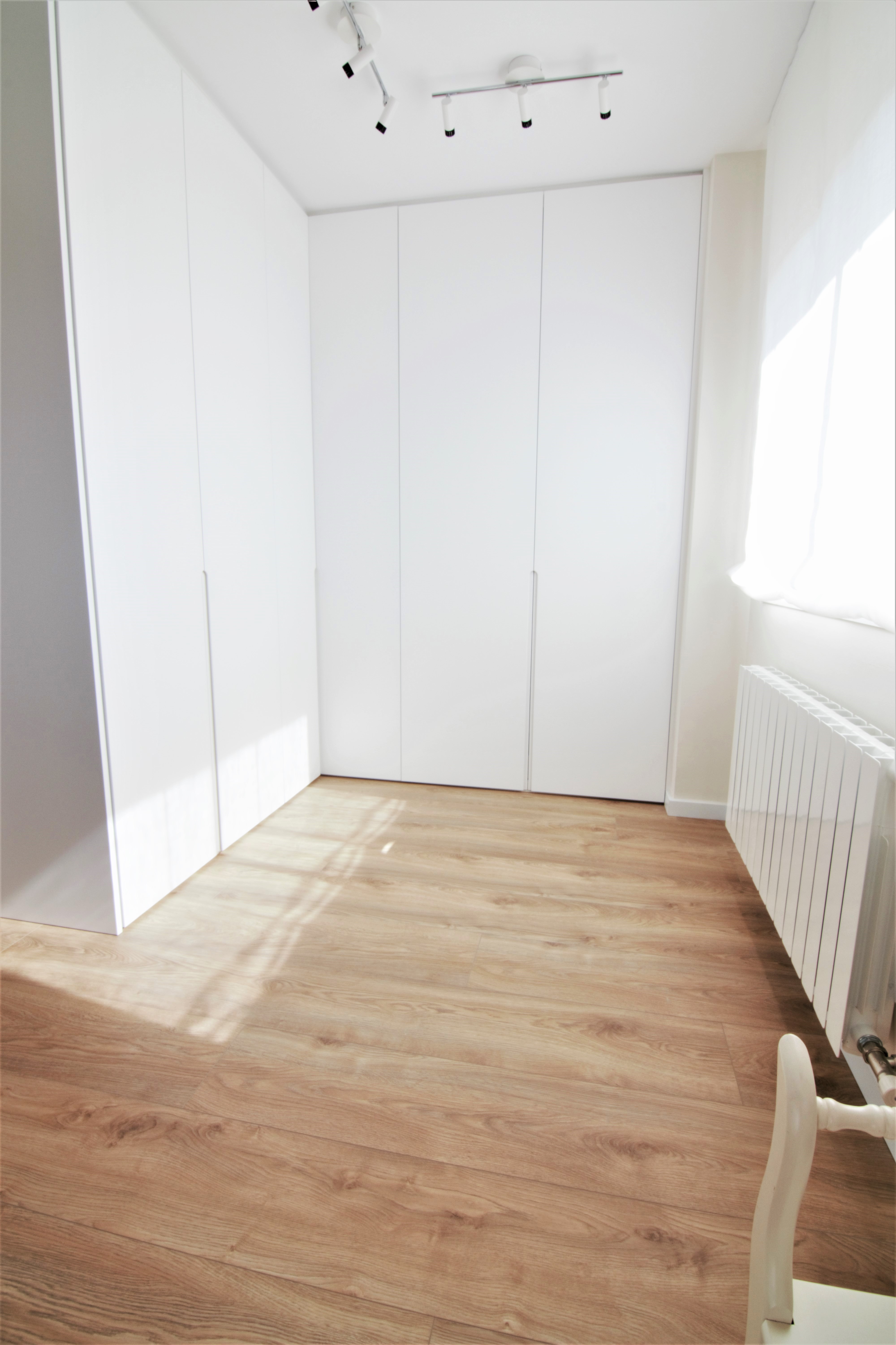 Instal·lació d’armaris i mobiliari a mida amb acabat laca blanca.